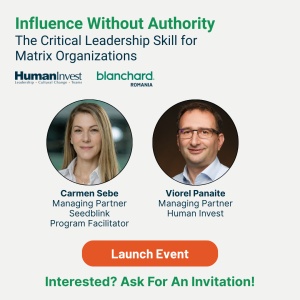 Te invitam Marti, 21 Aprilie 2026, intre orele 09:00 – 12:30, la evenimentul de lansare a noului nostru program Influence Without Authority, eveniment care va avea loc la Hotel Capital Plaza! Noul program Human Invest este dedicat managerilor si profesionistilor care vor sa aiba o influenta mai buna in raport cu stakeholder-ii lor cheie cu care lucreaza transversal, in organizatii matriceale, cand puterea data de pozitie lipseste. Fie ca esti Product Owner, middle manager, lider de proiect, expert tehnic sau…